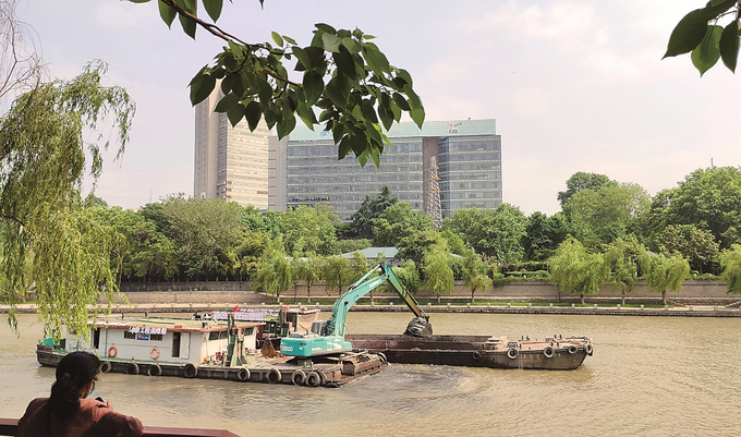 8日,南京秦淮河清淤工作全面推進,計劃對秦淮河中和橋至三汊河口閘段進行全面清淤,總清淤量達100萬立方米。今年底,將為市民呈現(xiàn)水清岸綠的秦淮風(fēng)光。本報記者 樂濤 攝