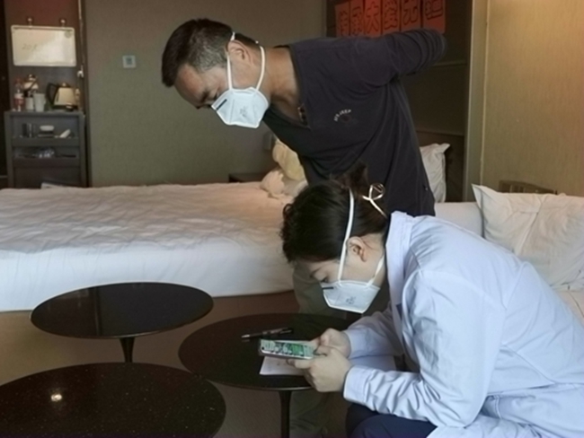 5月4日晚6點(diǎn)多,從香港求醫(yī)歸來的張氏夫婦懷抱著精神萎靡的哼哼,由機(jī)場(chǎng)大巴閉環(huán)轉(zhuǎn)運(yùn)至海淀區(qū)紅杉集中醫(yī)學(xué)隔離觀察點(diǎn),晚上8點(diǎn)半,到達(dá)酒店辦理入住。來自四季青醫(yī)院的張龍珍負(fù)責(zé)接待工作,豐富的工作經(jīng)驗(yàn)讓她第一時(shí)間注意到了被母親抱在懷中的哼哼,臉有一些不正常的浮腫,便上前詢問情況,得知他患有神經(jīng)母細(xì)胞瘤并轉(zhuǎn)移至腦部及全身時(shí),張龍珍便親自照顧起了這一家人,一步一步指導(dǎo)哼哼爸爸掃碼,填寫個(gè)人信息,并在前臺(tái)開放綠色通道,快速為他們辦理入住。