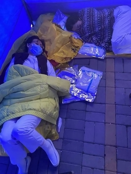 猝不及防的臨時(shí)通知打斷了急救中心工作人員的晚餐,也來不及扒拉兩口飯,立刻起身,換上全套防護(hù)裝備,一個(gè)個(gè)“大白”已然整裝待發(fā)。
