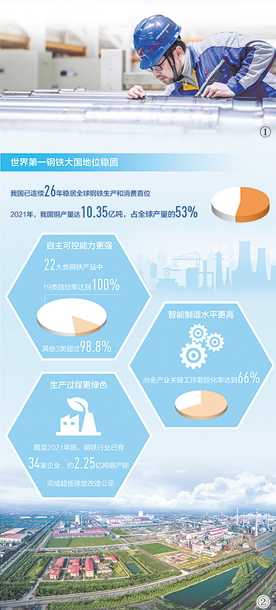 “目前,我國(guó)已經(jīng)建立起全球產(chǎn)業(yè)鏈最完備、規(guī)模最大的鋼鐵工業(yè)體系,配備了世界上最先進(jìn)的裝備、工藝和技術(shù),能提供最豐富齊全的鋼鐵產(chǎn)品?!敝袊?guó)鋼鐵工業(yè)協(xié)會(huì)黨委書記何文波說,黨的十八大以來,鋼鐵業(yè)現(xiàn)代化水平不斷提升。
