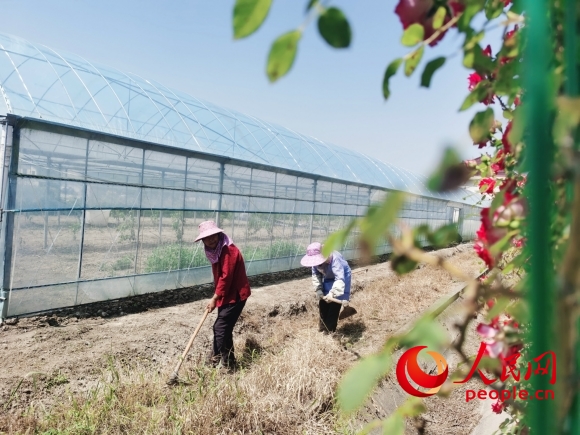 如東縣掘港街道虹橋村村民正在虹橋家庭農(nóng)場(chǎng)干活。人民網(wǎng)記者 王繼亮攝