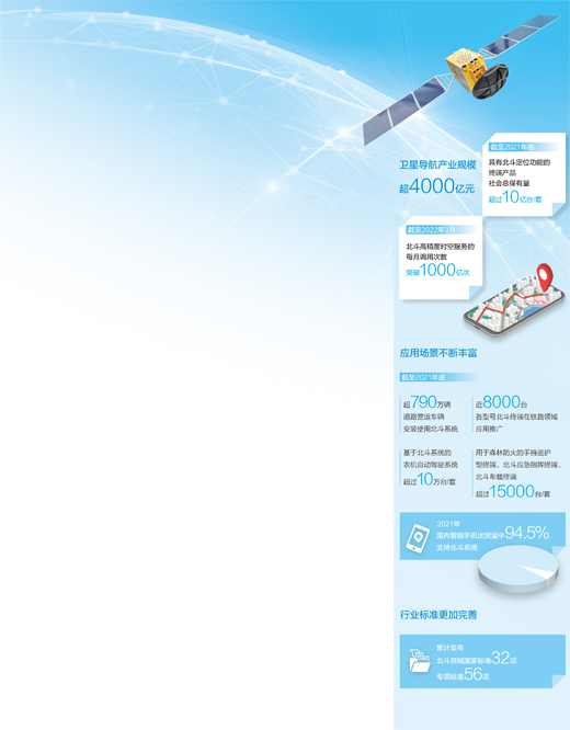從產業(yè)基礎看,國內以北斗為核心的導航與位置服務技術創(chuàng)新持續(xù)活躍,國產北斗芯片、模塊等關鍵技術取得突破,支持北斗三號新信號的SoC芯片,在物聯網和消費電子領域得到了廣泛應用。截至2021年底,具有北斗定位功能的終端產品社會總保有量超過10億臺/套。