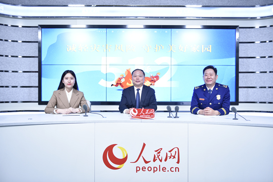 “減輕災(zāi)害風(fēng)險(xiǎn) 守護(hù)美好家園”系列訪談現(xiàn)場(chǎng)。人民網(wǎng) 朱鵬濤攝