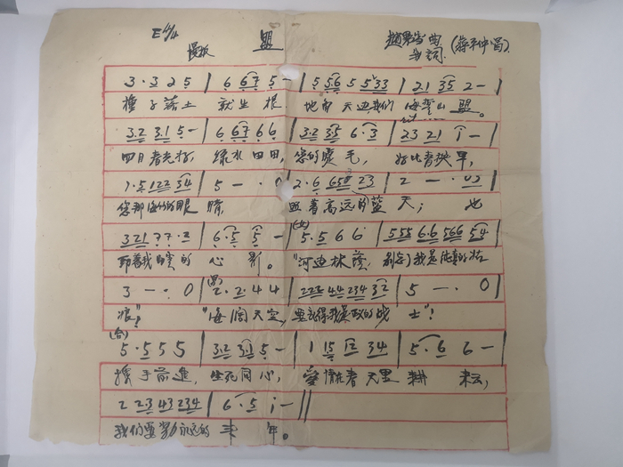 趙良璋作曲、薛介民作詞的曲譜《盟》手稿。雨花臺烈士紀念館供圖