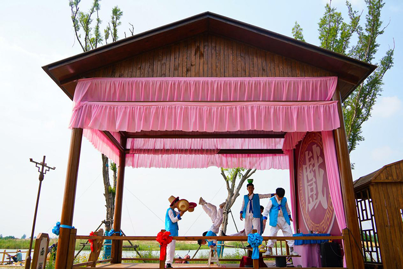 景區(qū)內(nèi)一處戲臺上正進行表演。李歡攝