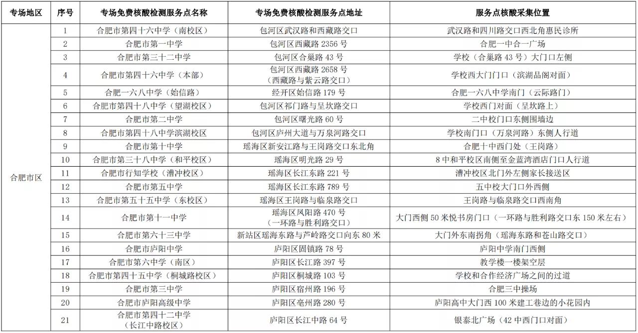 合肥將于6月5日開展高考專場(chǎng)免費(fèi)核酸檢測(cè)