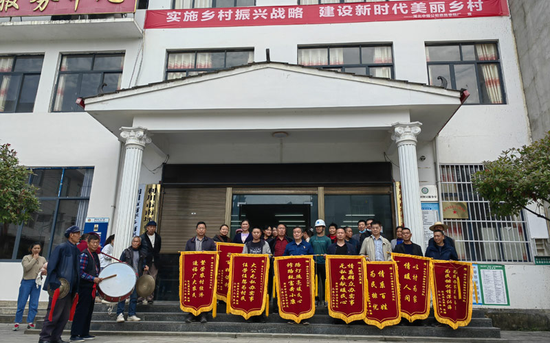 南坪村村民代表向湖北中煙駐村工作隊贈送感謝錦旗。
