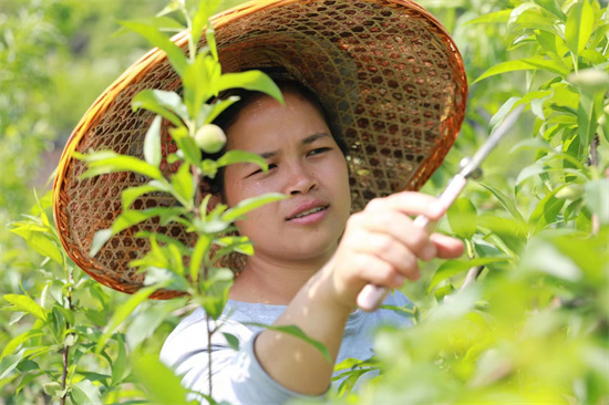 “今年是一個(gè)豐收年,我們正在給果園松土和縮果。等下個(gè)月底成熟了,歡迎大家來(lái)吃甜蜜蜜的黃桃?!睎|安縣大廟口樂(lè)福村,成片的黃桃進(jìn)入掛果期,唐云云站在“云端”,提前向網(wǎng)友發(fā)出豐收的邀請(qǐng)。