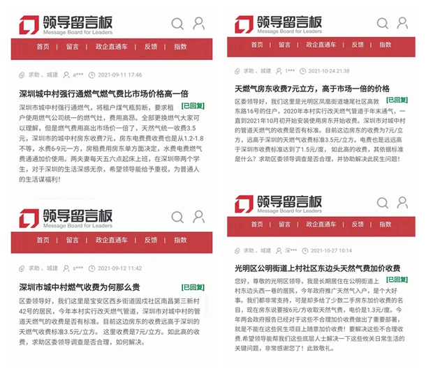 近年來,隨著深圳全力推進城中村管道燃氣改造,“二房東”亂收燃氣費的現(xiàn)象層出不窮。多位深圳網(wǎng)友曾在人民網(wǎng)“領(lǐng)導留言板”留言,反映房東收取的燃氣費遠高于《深圳市燃氣價格制度標準》?!罢茝V天然氣入戶,是個大好事,我們都非常支持,可是卻給了少數(shù)二手房東加價收費的名目?!币晃痪W(wǎng)友說。