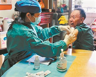 當(dāng)天上午,86歲高齡的黃俊英精神矍鑠,圍繞著粵語相聲聊得起勁。一旁的醫(yī)護(hù)人員嚴(yán)格按照接種流程,對他的身體健康狀況進(jìn)行綜合檢查和認(rèn)真評估,確認(rèn)其健康狀況穩(wěn)定、無相關(guān)禁忌癥,并征得其同意后,為其接種疫苗。