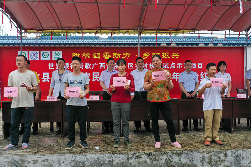正在布置分紅現(xiàn)場的東皇嶺農(nóng)民專業(yè)合作社理事長覃順從說:“世行項目大化縣東皇嶺農(nóng)民專業(yè)合作社今天召開2021年年度分紅大會,給175戶入股社員發(fā)放80萬元分紅,下一步我們將和世行項目深入合作,擴(kuò)大我們的農(nóng)業(yè)產(chǎn)業(yè)基地,實(shí)現(xiàn)鄉(xiāng)村振興農(nóng)民增收的雙贏目標(biāo)?!?/p>