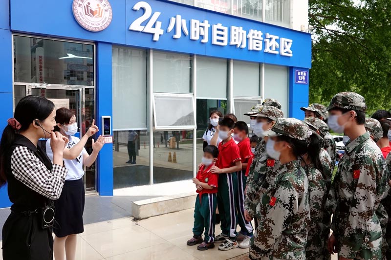 廣西河池市金城江區(qū)特殊教育學校的孩子們在參觀圖書24小時自助借還區(qū)。高東風攝