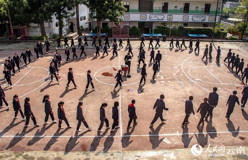 在云南省大理州云龍縣寶豐鄉(xiāng),穿過一條青石鋪就的古樸街道,走進(jìn)青瓦白墻的寶豐中心完全小學(xué)校門,便聽見一聲聲鏗鏘有力的鼓點(diǎn)。