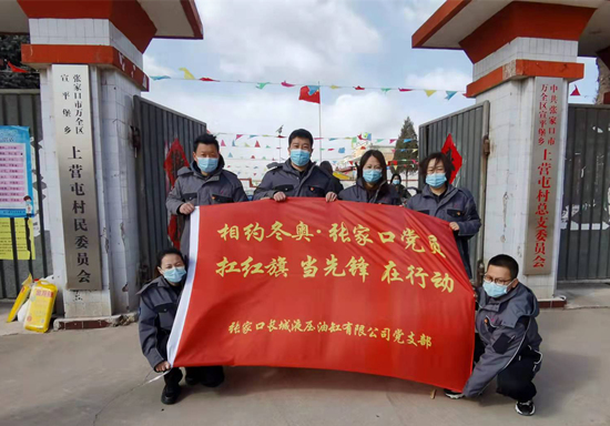 長城液壓油缸有限公司開展“扛紅旗當(dāng)先鋒”活動,為上營屯村贈送價值1萬余元的生活用品。 萬全區(qū)委組織部供圖
