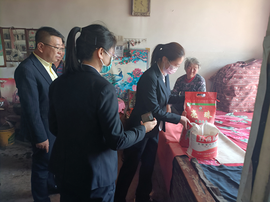 蔚縣國威大藥房開展愛心幫扶活動,為桃花鎮(zhèn)謝家廟村生活困難老人送去米、面、油等生活用品。 蔚縣縣委組織部供圖