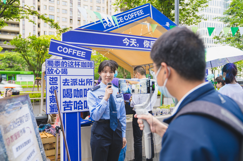 同時,隨著“坐在警務(wù)站里喝咖啡”話題持續(xù)火爆,公安民警將踐行“三能”要求與參與創(chuàng)意市集相結(jié)合,創(chuàng)新推出了“蜀黍請你喝咖啡 反詐知識帶回家”快閃活動,以更有活力、更接地氣、更潮流入時的方式,讓年輕群眾在學(xué)習(xí)知識的過程中,還能品嘗到香醇可口的咖啡。
