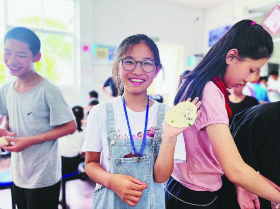 同學(xué)們拿起燒餅,迫不及待地咬上一口,香酥的燒餅便從舌尖慢慢滲透開來(lái)。品嘗著美味的燒餅,同學(xué)們個(gè)個(gè)笑開了花。