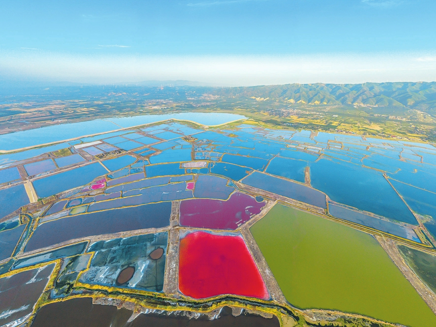 仲夏時節(jié),隨著氣溫升高,運城鹽湖濕地呈現(xiàn)出色彩斑斕的美麗景觀。近年來,運城市大力實施“退鹽還湖”“還湖于民”生態(tài)修復(fù)工程,把鹽湖從礦區(qū)、工業(yè)區(qū)變?yōu)樯鷳B(tài)保護(hù)區(qū)、旅游區(qū)。(閆鑫攝)