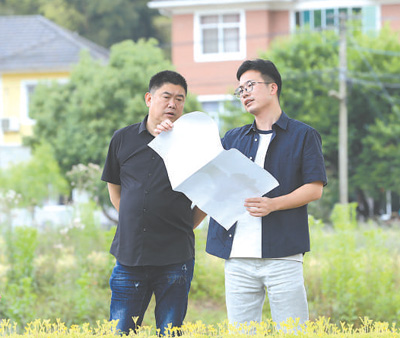 浙江省杭州市臨安區(qū)天目山鎮(zhèn)駐鎮(zhèn)規(guī)劃師金宇航(右)在現場踏勘。