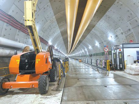 走進(jìn)項(xiàng)目工地,沒有想象中的機(jī)械轟鳴聲,施工現(xiàn)場位于幾十米深的地下。記者從地面乘坐直梯,順著盾構(gòu)機(jī)始發(fā)井,來到地下26米處的西線隧道內(nèi)。國產(chǎn)最大直徑泥水平衡盾構(gòu)機(jī)“京華號(hào)”,已在西線隧道里向前掘進(jìn)了近4000米。眼前的西線隧道,蜿蜒著向南延伸。開工初期,記者從始發(fā)井步行幾分鐘即可抵達(dá)盾構(gòu)機(jī)駕駛艙位置;這次采訪,施工方特意安排了1輛純電動(dòng)代步車?!艾F(xiàn)在盾構(gòu)機(jī)離始發(fā)井有些遠(yuǎn),工作人員上下班都得坐車?!瘪{駛員說,這輛電動(dòng)代步車是用吊車吊到隧道內(nèi)的,還特意為它在隧道里安了充電樁,“這輛車再回到地面,就得是隧道貫通的時(shí)候啦!”