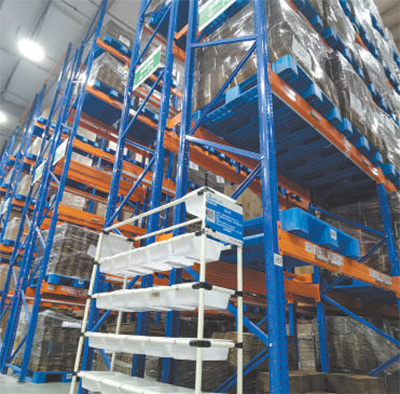 保稅倉內(nèi),裝滿進(jìn)口醫(yī)藥產(chǎn)品的貨架。