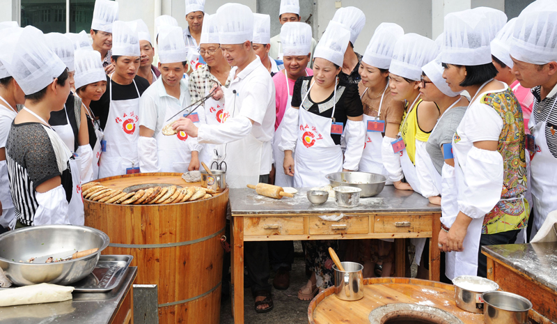 縉云燒餅師傅現(xiàn)場教學。麗水市委宣傳部供圖