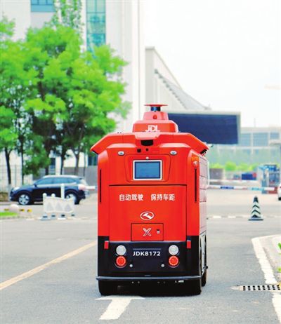 天津(西青)車聯(lián)網(wǎng)先導(dǎo)區(qū)的京東智能配送車應(yīng)用場景。記者 潘立峰 通訊員 袁忠清 攝