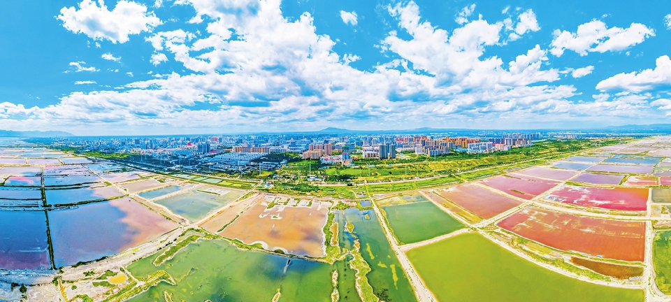 6月28日,運城市中心城區(qū),藍天白云與七彩鹽湖交相輝映,美不勝收。近年來,運城市緊緊圍繞綠色發(fā)展理念,加強鹽湖生態(tài)資源的保護和修復(fù),將鹽湖打造成生物多樣的生態(tài)空間、風光旖旎的旅游目的地、愜意舒心的居民休憩地。(陳方斌攝)