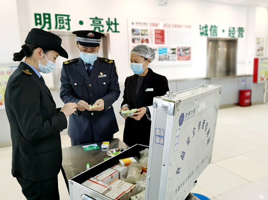 邢臺(tái)市市場(chǎng)監(jiān)管部門執(zhí)法人員到第十九中學(xué)后廚對(duì)食品進(jìn)行快檢。 黃濤攝