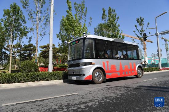一輛無(wú)人駕駛車(chē)在雄安新區(qū)道路進(jìn)行路測(cè)(2022年5月27日攝)。新華社記者 朱旭東 攝
