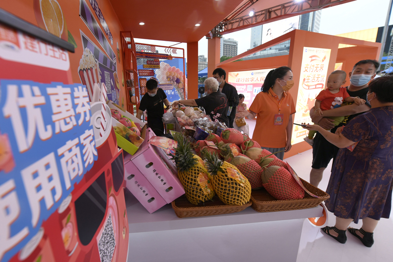 “618杭州拱墅消費(fèi)嘉年華”活動(dòng)上,消費(fèi)者在選購(gòu)水果。李忠攝