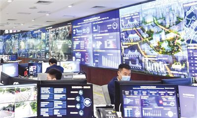 走進(jìn)這座智慧城市的“中樞”──生態(tài)城“城市大腦”運(yùn)營中心,只見以深藍(lán)為主色調(diào)的超大液晶屏鋪滿整面墻,科技感拉滿。屏幕上的數(shù)據(jù)和信息背后,是建設(shè)、環(huán)境、醫(yī)療、應(yīng)急等10多個(gè)領(lǐng)域的實(shí)時(shí)運(yùn)行情況,涉及30余個(gè)系統(tǒng)、400余項(xiàng)指標(biāo)。工作人員目不轉(zhuǎn)睛地監(jiān)測、記錄、反饋,在做到心中有“數(shù)”的同時(shí),也將城市管理運(yùn)營模式從“被動(dòng)處置”轉(zhuǎn)為“主動(dòng)干預(yù)”。
