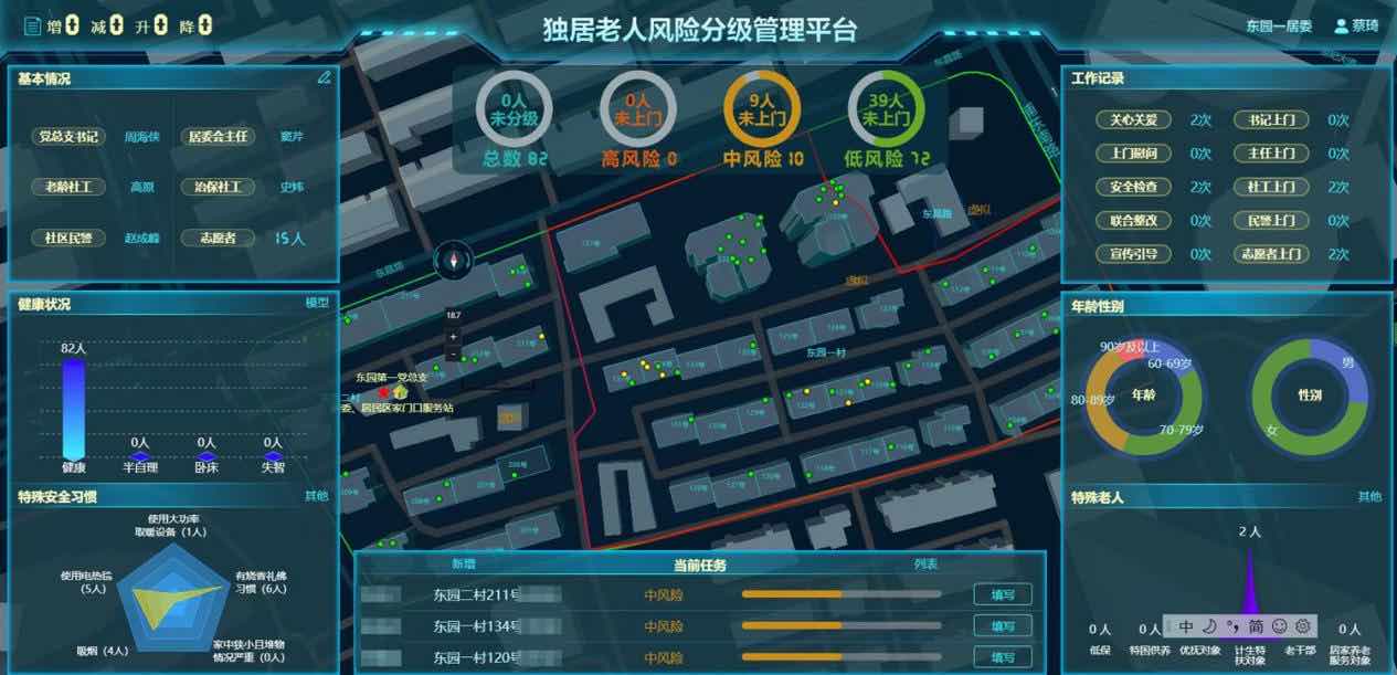 獨居老人風(fēng)險分級管理平臺。東一居民區(qū)供圖
