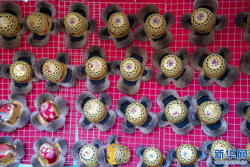 圖為第42屆雅礱物資交流會上展示的金絲藏帽(12月3日攝)。新華網(wǎng) 旦增努布 攝