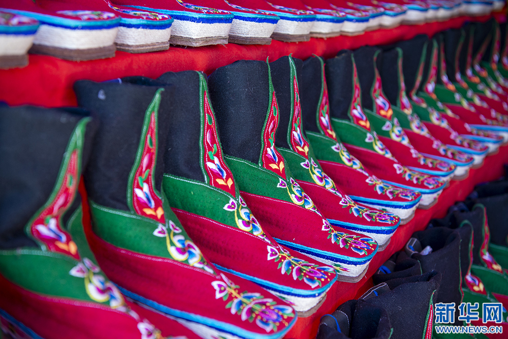 圖為第42屆雅礱物資交流會上展示的藏靴(12月3日攝)。新華網(wǎng) 旦增努布 攝