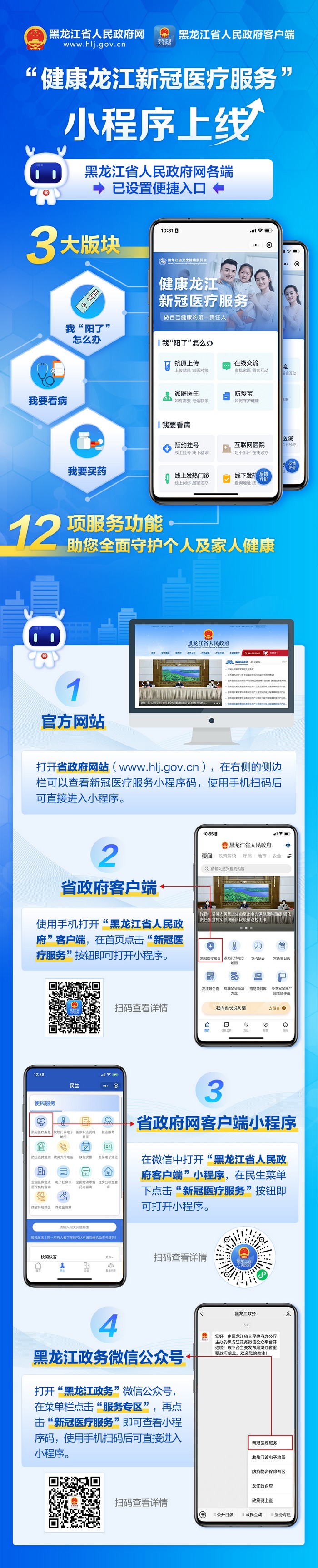 黑龍江省政府網(wǎng)站開(kāi)通“健康龍江新冠醫(yī)療服務(wù)”小程序入口