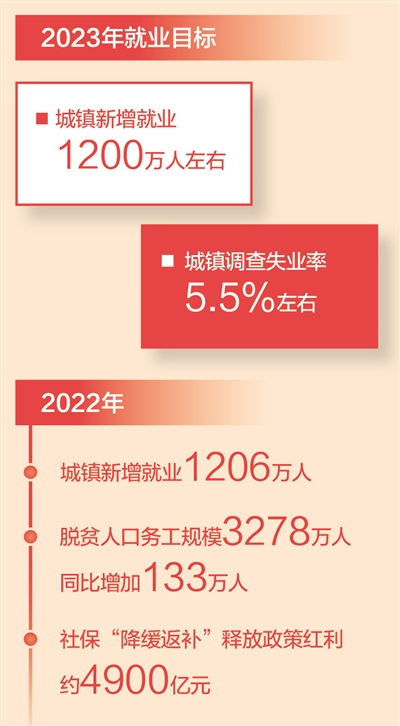 政府工作報告提出今年發(fā)展主要預期目標中,城鎮(zhèn)新增就業(yè)1200萬人左右,城鎮(zhèn)調查失業(yè)率5.5%左右。