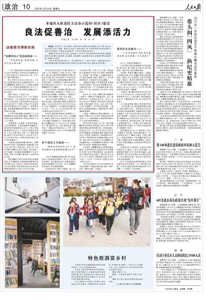 編者按:今年中央一號文件提出,加強(qiáng)鄉(xiāng)村法治教育和法律服務(wù),深入開展“民主法治示范村(社區(qū))”創(chuàng)建。最高人民法院工作報告提出,要“積極促進(jìn)城鄉(xiāng)基層治理和平安法治鄉(xiāng)村建設(shè)”“加強(qiáng)法治宣傳教育”“引導(dǎo)全民增強(qiáng)法治觀念”。