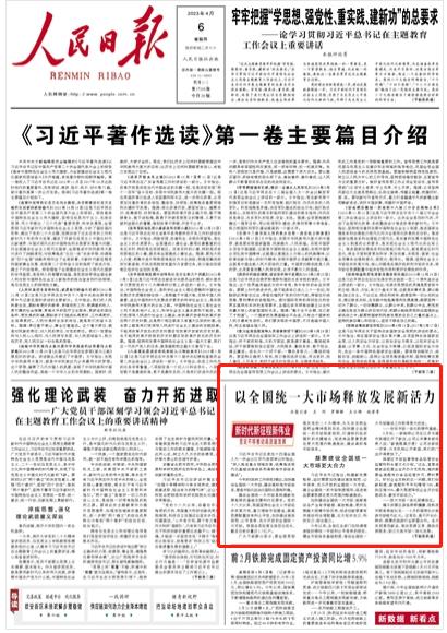【人民日報頭版關注湖南】以全國統(tǒng)一大市場釋放發(fā)展新活力