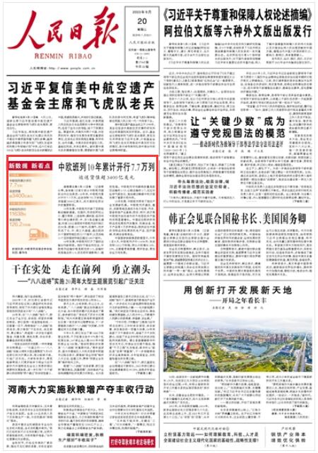 人民日?qǐng)?bào)|中歐班列10年累計(jì)開(kāi)行7.7萬(wàn)列 運(yùn)送貨值超3400億美元