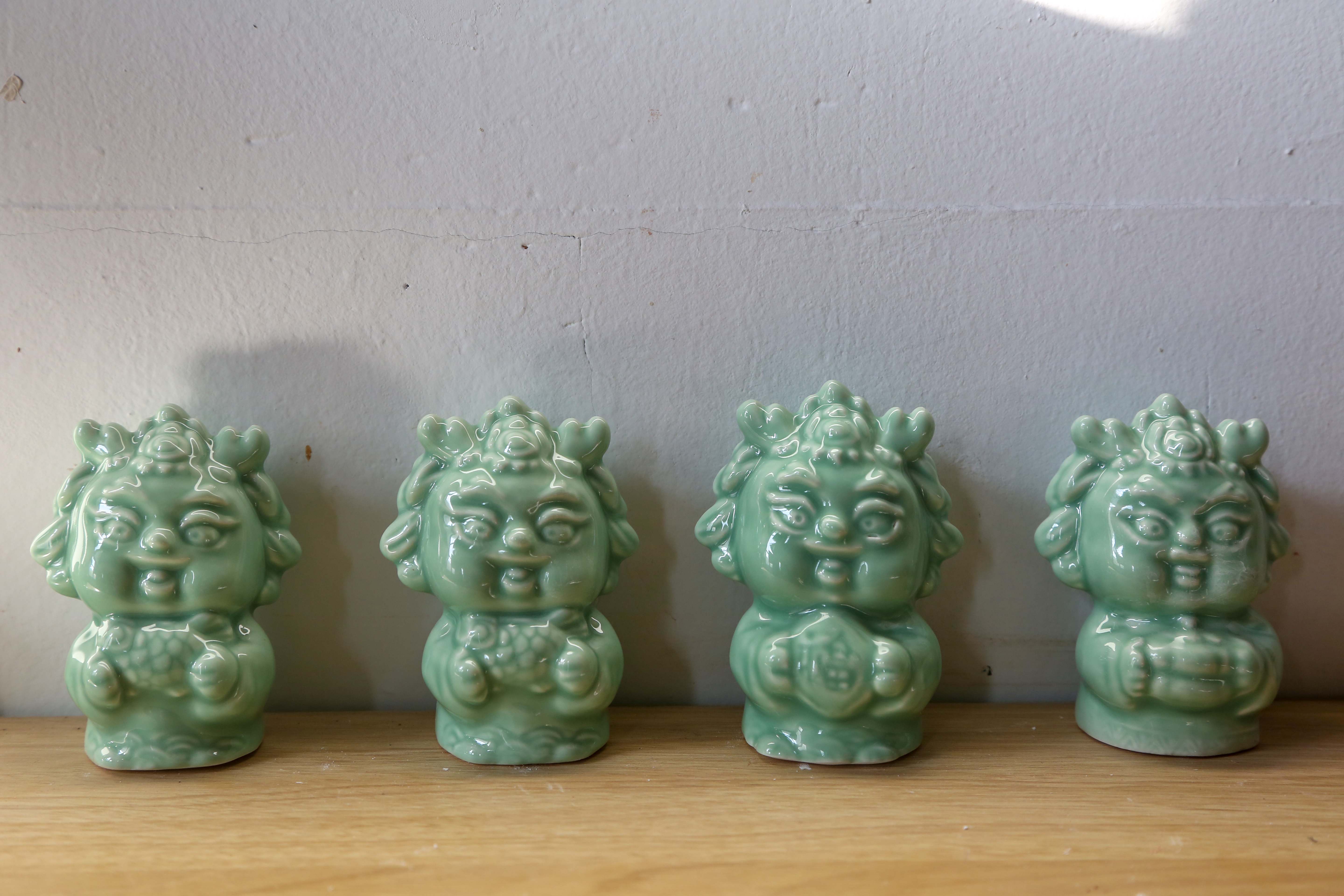 每年臨近春節(jié),史月明都會(huì)創(chuàng)作一些生肖元素的泥塑作品,用傳統(tǒng)藝術(shù)表達(dá)對(duì)新年的美好愿景。今年他以甲辰龍年為主題,創(chuàng)作了龍筆架、龍鳳呈祥擺件、大嘴龍裝飾品、小龍人掛件等泥塑作品,其中還融入了魚、福字、銅錢、元寶等極具美好寓意的元素。一件件制作完成的泥塑作品“龍”重登場(chǎng),形神兼?zhèn)?、惟妙惟肖,讓大家感受到了栩栩如生的龍?jiān)睾图橄矐c的年味。