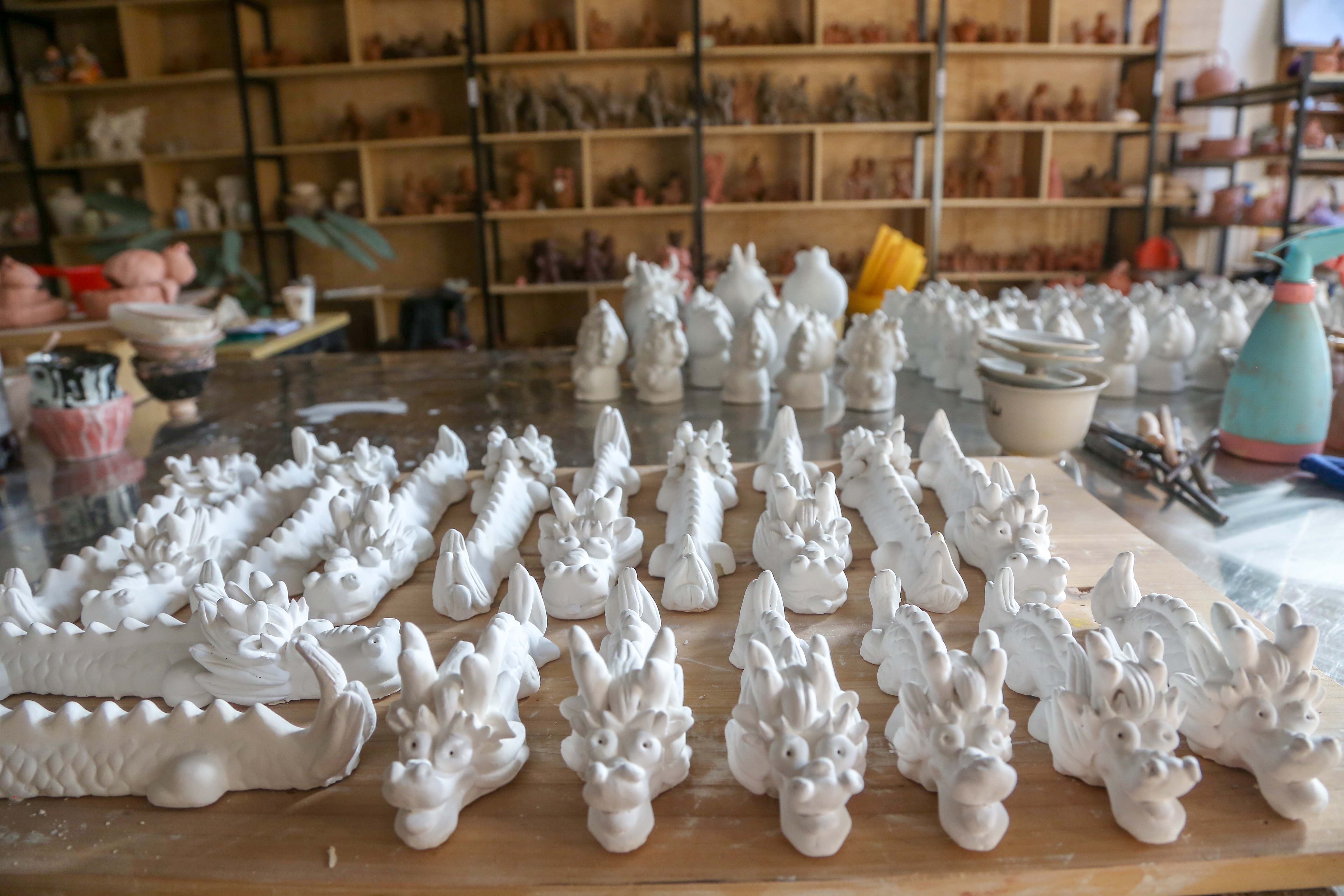 一抔泥土、一把刻刀,經(jīng)巧手捏制、刻畫、修整、彩繪、燒制等多道工序后,一個(gè)個(gè)活靈活現(xiàn)、寓意吉祥的泥塑作品便制作完成了。