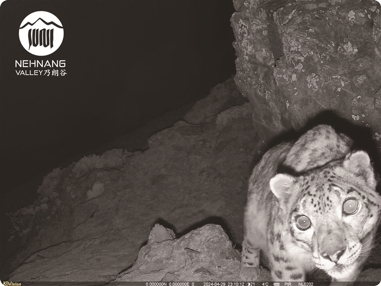 在南巴村監(jiān)督主任頓珠次仁的帶領(lǐng)下,記者一行抵達(dá)了第一戶牧民的夏季牧場臨時(shí)住所。乃朗谷的海拔在3500米以上,這里的生境主要包括高山祼巖、高山草甸、高山灌木叢以及山地針葉林緣等四種類型。對于雪豹而言,懸崖峭壁和山脊線是它們休息與隱蔽的絕佳場所。它們通常會利用巖石地形和灌木叢植被進(jìn)行隱蔽,巧妙地跟蹤獵物,并采取伏擊或偷襲的方式進(jìn)行捕獵。