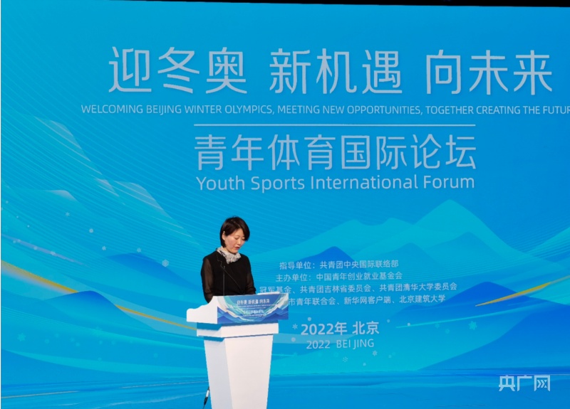 北京冬奧組委志愿者部副部長張麗娜在青年體育國際論壇上(央廣網(wǎng)記者 關(guān)靈子 攝)