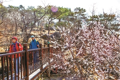 張宇介紹,蟒山景區(qū)森林步道有五條分支,連接成網(wǎng)。既有林間小道,也有木棧道、石臺階棧道等。游客可以沿著山脊,欣賞十三陵水庫和明十三陵風(fēng)景,同時(shí)還可以穿越林海,感受大自然的獨(dú)特魅力。她說,“蟒山景區(qū)森林步道全長約14公里,有的路段比較平坦,適合親子家庭踏春賞景;有的路段山勢陡峭,適合戶外運(yùn)動愛好者去攀登探索。此外,公園將其中一條分支開辟為車行道,游客可以把車開到半山腰,路途比較平坦,為游客登山提供了便利?!睋?jù)北京市園林綠化局國有林場和種苗管理處處長曾小莉介紹,今年本市將在5家國有林場推出總長度約100公里的森林步道,吸引更多市民游客體驗(yàn)森林旅游,感受生態(tài)之美。