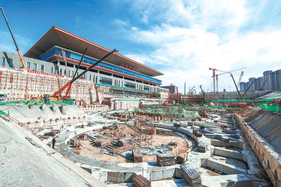 北京朝陽(yáng)站(原星火站)是《北京城市總體規(guī)劃(2016年-2035年)》確定的本市鐵路對(duì)外客運(yùn)樞紐之一。北京朝陽(yáng)站交通樞紐工程總建筑面積13.3萬(wàn)平方米,包括北側(cè)公交立體停車樓和南側(cè)樞紐換乘大廳。同時(shí),地鐵星火站作為地鐵3號(hào)線、R4線的換乘站,位于交通樞紐地下,基坑最深處位于地下40米,相當(dāng)于13層住宅樓的高度。