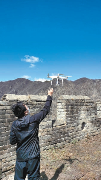 翼展近2米的固定翼無人機(jī)、搭載著5個(gè)鏡頭的傾斜攝影無人機(jī)、白色的小型無人機(jī)……4月14日早上,記者驅(qū)車下了京承高速、經(jīng)過雁棲島,又走了30多公里盤山路,來到被箭扣長城環(huán)抱的雁棲鎮(zhèn)西柵子村。村西長城腳下,五架無人機(jī)一字排開,技術(shù)人員正在組裝調(diào)試。當(dāng)天,它們分工合作在長城內(nèi)外、上下進(jìn)行拍攝、采集數(shù)據(jù)。