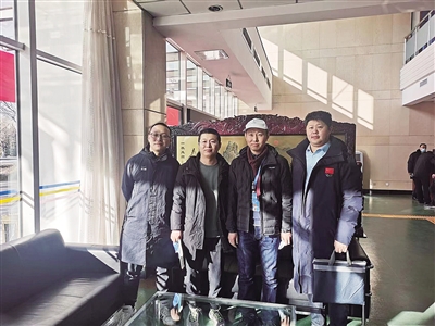 1月22日,劉冠林(左一)和冬殘奧會開閉幕式工作組部分工作人員合影。受訪者供圖
