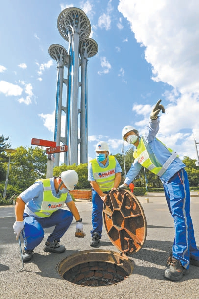 汛期到來前,北京排水集團工作人員進行管線清掏作業(yè)。 北京排水集團供圖