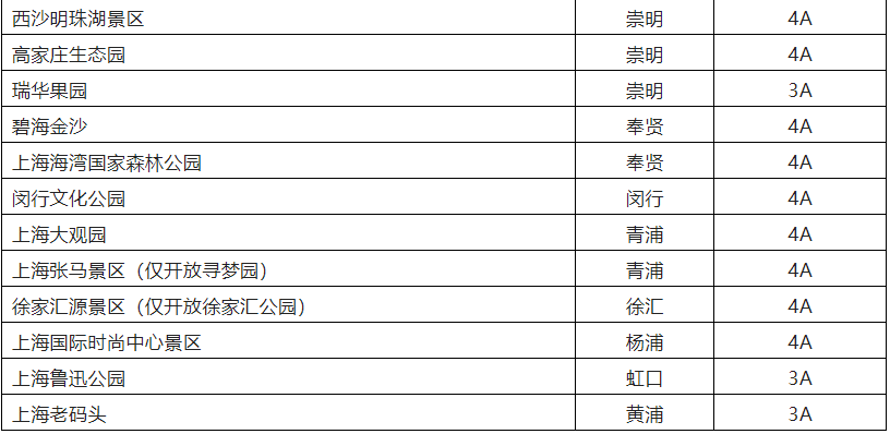 恢復(fù)開放的32家A級旅游景區(qū)(圖片來自上海市文旅局,央廣網(wǎng)發(fā))